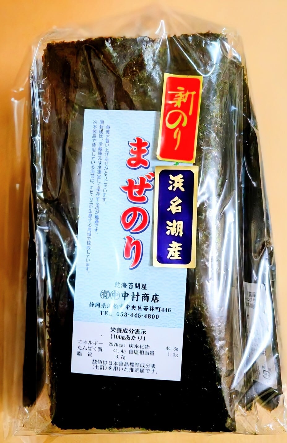 浜名湖産の青のりと愛知県産の黒のりを混ぜて作ったとても香りの良い海苔です。